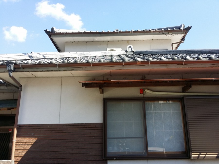 宇都宮市で雨樋交換工事と破風板金巻き工事をしました。 施工前の全景です。 雨樋の中心部分から雨水が落ちてくるので見て欲しいとのご要望で現場調査の結果、着工になりました。 足場を建てると言う事で破風の傷みが激しいのでが気になるため、ガルバニュウム製破風板金を巻き補修しました。 ...続きを読む2022/03/7 春日井市で屋根調査 きっかけは訪問業者による瓦のズレの指摘