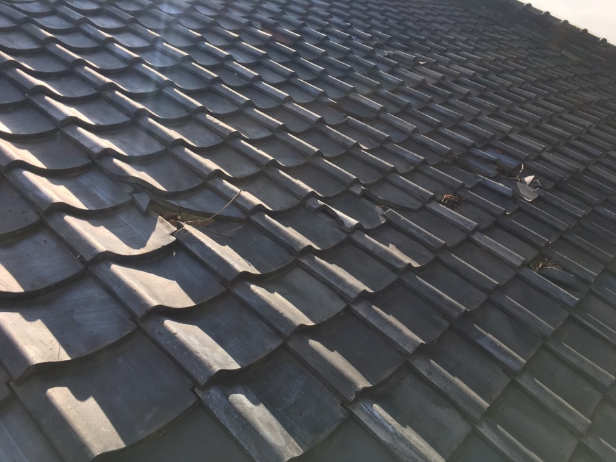 宇都宮市の工場でスレート屋根の補修工事をしました。 施工前の工場のスレート屋根の状態です。 軒先の波型スレート屋根材が、コの字型に破損して無くなっている状態です。 新規の波型スレート屋根材を重ね補修していきます ...続きを読む2022/02/28 生駒市で経年劣化による和瓦の破損修繕工事の工事依頼から完了まで