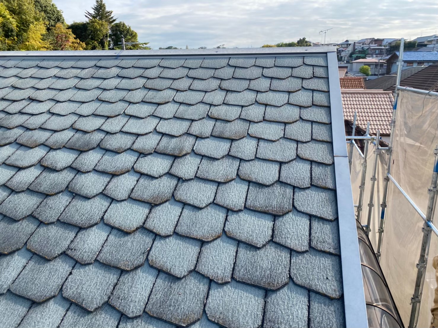 「雨漏りしている屋根を見て欲しい」というお問い合わせを頂いた今治市のY様邸。築35年のコンクリート瓦の屋根は傷んで割れた瓦も見られます。前回のブログでは紹介した雨漏り調査と雨漏り原因・応急処置をご紹介しました。→前回のブログはこちら『今治市Y様邸 雨漏り調査と応急処置』今回のブログでは実際に行った雨 ...続きを読む2022/02/28 奈良市築25年の鱗スレートをカバー工法でメンテナンスし雨漏り回避