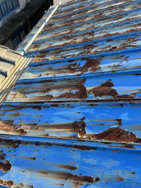 八尾市にお住いのお客様から波板と樋が飛んだので、修理してほしいですとお問い合わせをいただきました。 まずは現状です。端の方から2枚ほどでしょうか、波板が飛ばされて負います。昔は繊維の入った波板がよく使われていました。割れても飛び散らな ...続きを読む2022/02/26 佐倉市寺崎台の築20年が経過した屋根調査、グリシェイドネオへの屋根カバー工事のご提案