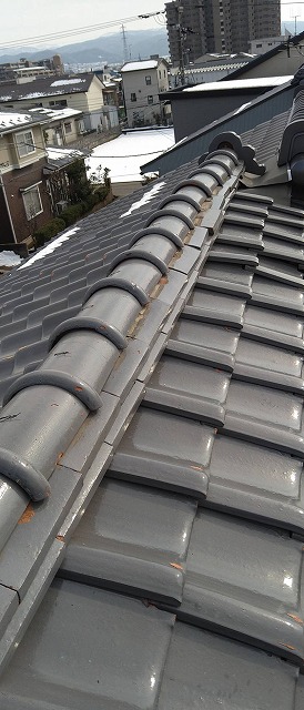 岐阜市のお客様より「瓦屋根の漆喰が剥がれているようだから補修を検討したい」とのご相談を受けて、無料点検にお伺い致しました。 お住まいは築40年の瓦屋根。数か月前に瓦屋根が剥がれてしまったということで、業者に直してもらったそうです。瓦自体は比較的しっかりとしていますが、漆喰は大分劣化が進んでい ...続きを読む2022/02/26 今治市で雨漏りの調査と応急処置を行いました。