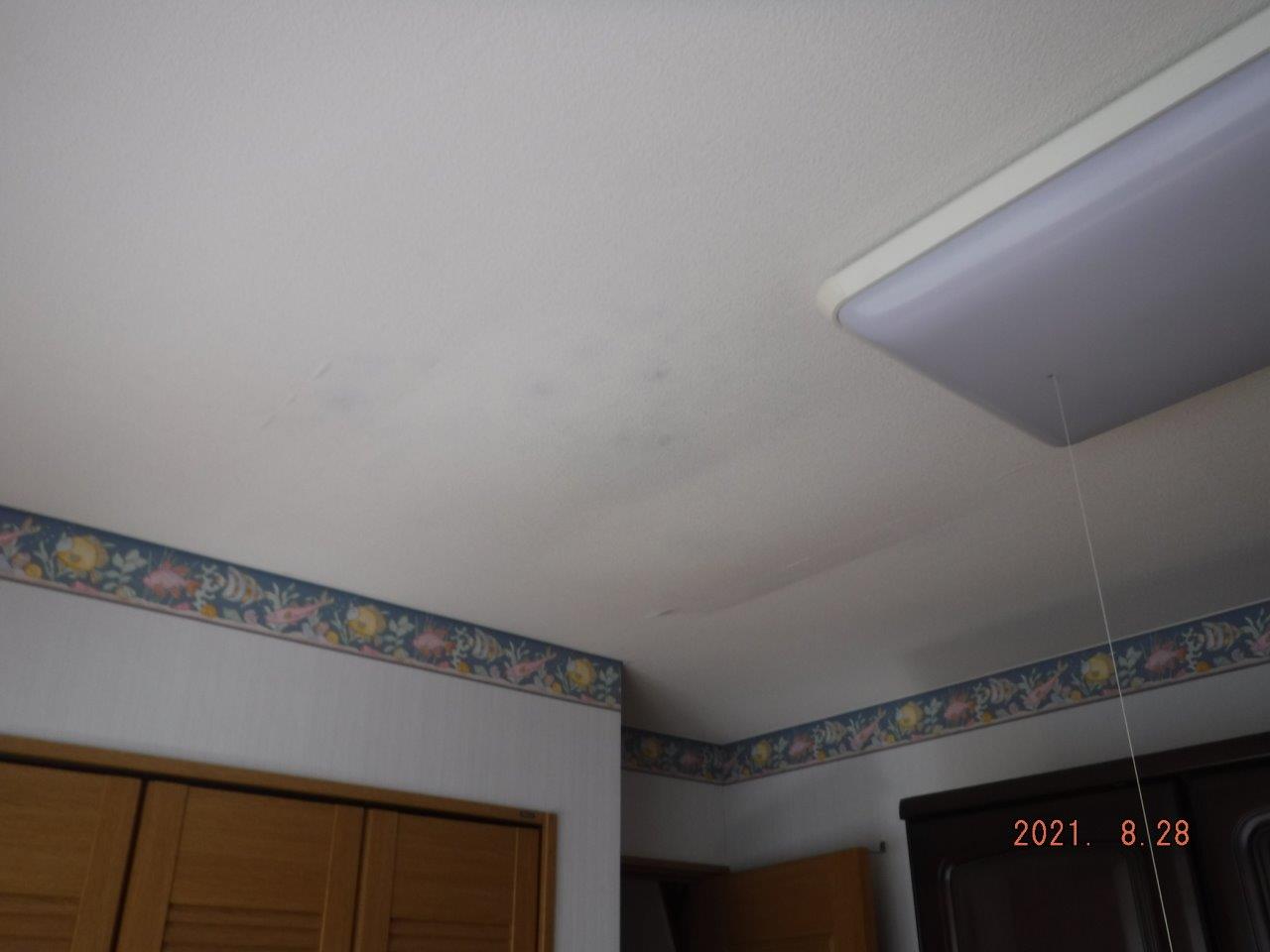 新潟市北区にお住まいの方より、天井が雨漏れしているため見て欲しいとご連絡を頂き、早速雨漏れの状況や原因を確認するために訪問してきました。2階部屋の天井を見てみると、広範囲に雨染みが広がっている状態で、近くに照明が設置されてましたので漏電する危険性があり、早めに修繕が必要です。 ...続きを読む2022/02/13 新潟市江南区にて築20年のお宅で3部屋雨漏れ?被害とお問い合わせを頂きました
