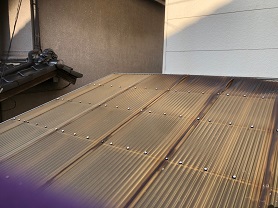こんにちは!街の屋根やさん京都南店です!本日は木津川市での屋根修理工事をご紹介します。工事内容は雨樋部分交換と笠木板金交換になります。現状、ベランダから雨漏りしておりその解消の為に屋根工事依頼を受けました。ベランダ床はFRP防水を行い、雨漏り対策を行いました。雨漏り修理・雨漏り改修工事は街の屋 ...続きを読む2022/02/5 長岡京市で劣化し穴の空いたポリカ波板交換の屋根修理工事
