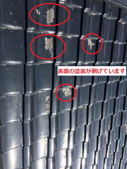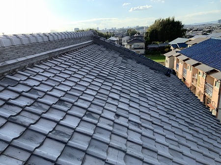 交野市にて入母屋屋根の葺かれてから30年以上経過した、和形いぶし瓦屋根の点検を行いました。 今回は交野市にお住まいのお客様より、「屋根を葺替工事してから、30年近く経っているので、一度屋根の状態を見てほしい」とのご相談をいただき、日本の伝統的な屋根形状である「入母屋屋根( ...続きを読む2026/01/16 丸亀市で劣化が目立っていたモニエル瓦への「マイティーシリコン」による塗装の様子