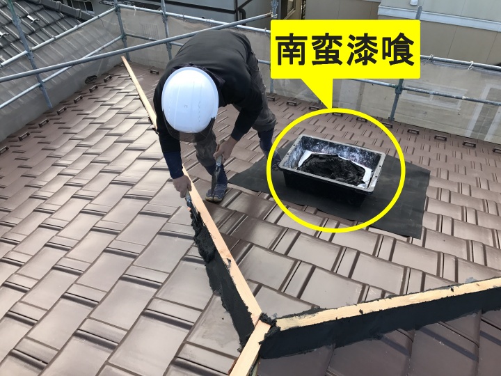 流水テープで水の逃げ道を確保 可児市愛岐ヶ丘にて進めている瓦屋根リフォーム工事では、ルーフィング施工完了後に流水テープを施工していきます☝️流水テープとは、後に取り付ける引っ掛け桟とルーフィングの間に隙間をつくるための部材で、屋 ...続きを読む2026/01/16 交野市にて入母屋屋根・和形いぶし瓦屋根の点検!棟の面戸漆喰の剥がれや、銅板部分に穴開きが見られました。
