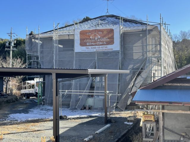 こんにちは!街の屋根やさん京都南店です!本日は城陽市で換気棟板金交換の屋根板金工事をご紹介します。既存の棟板金下地は木の下地材でしたが今回は樹脂製木材のタフモックを下地材にして新しい換気棟板金を取付します。樹脂製木材のため木材とはことなり腐食することはありません。板金:屋根材や外壁材の素材であ ...続きを読む2022/01/22 飯田市の皆様へ。外壁塗装工事着工しました。