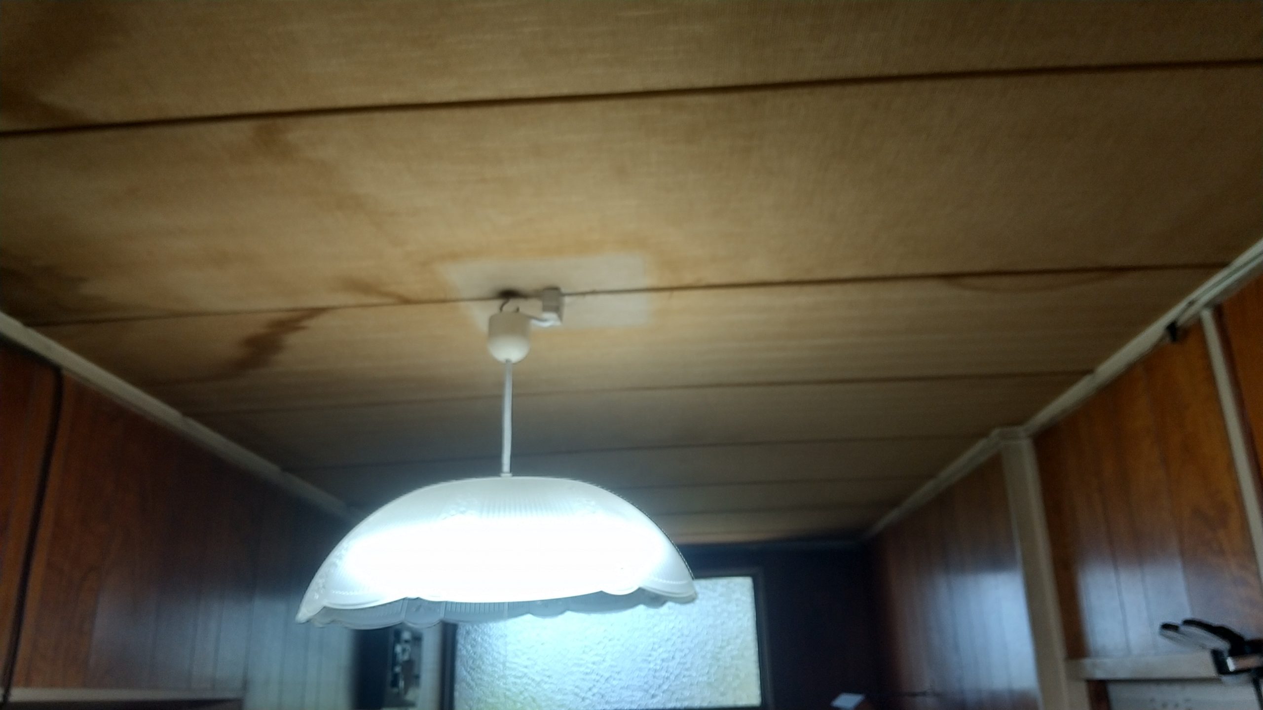 新潟市江南区にお住まいの方より、築50年で雨漏れがひどいので葺き替えを考えていますとお問い合わせを頂きました。早速雨漏れの状況を確認するために訪問してきました。上記写真をご覧ください。照明の右上くらいに黒くシミが出来ており、そこから雨水が滴り落ちている状況です。 ...続きを読む