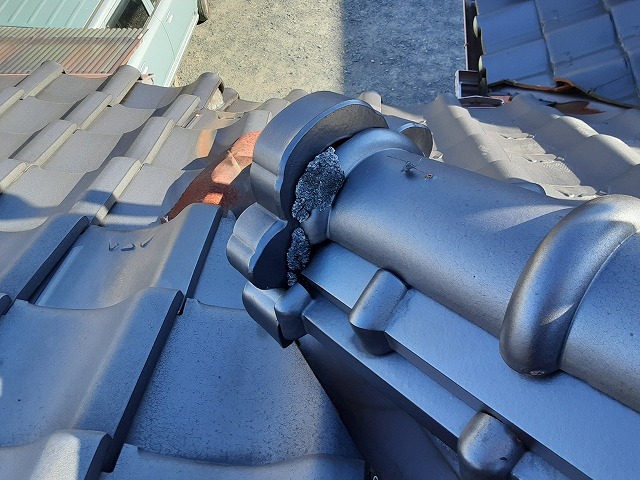 岐阜市にお住まいのI様は、屋根の部材が庭に落ちてきてしまったので調査と、どういう対処が出来るかを提案してほしいとお問い合わせをくださいました。調査のため屋根に上がらせていただくと、割れていて今にも落ちてしまいそうなスレート屋根材が目に入りました。 ...続きを読む2021/12/7 名古屋市名東区にて雨で歪み始めた瓦屋根の棟積み直し工事が開始