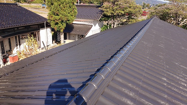 本日最終工程です 皆さんこんにちは! 営業の平井です。今回のブログは、長野県駒ヶ根市にて行っているスレート瓦の塗装現場です。前回のブログまでで屋根の中塗り作業までが終わってきました。本日より屋根の上塗り作業を行って行こうと思います。中塗りに使った塗料をも ...続きを読む2021/12/9 飯田市の皆様へ。飯田市内で屋根カバー工事を行っています。
