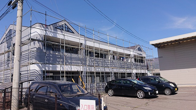 塩尻市広丘吉田にて行っているアパートのメンテナンス塗装の現場のご紹介です。建物が大きいため足場設置の作業も2日に分けて予定を建てました。そして、今日はその、2日目になります!!前回、足場の半分が出来ていました。今回はもう半分の作業になります。アパートの南面はほぼ骨組みが完成しています。残りの半分 ...続きを読む2021/11/5 長野県塩尻市広丘吉田のアパート外壁塗装工事!!中塗りを行いました!!