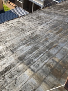 宇都宮市でスーパーシリコンルーフを使い大屋根の中塗りをしました。スレート屋根材目地のダメ込み中です。 今回の屋根塗装ではスレート屋根材の厚みが厚く、ローラーでは目地に塗料が入りま ...続きを読む2021/10/9 宇都宮市で薄型スレート屋根用の縁切り材を取り付けました。