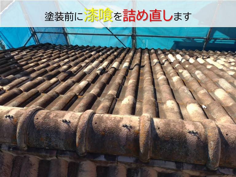 高石市K様邸で屋根葺き替え工事を行い、同時にモルタルの外壁も塗装しました。屋根の葺き替え工事で建物の全周に足場を設置するので、塗り替え時期にきていた外壁も塗装することになり工事に至ります。屋根の葺き替えではホコリなどがたくさん舞いますので、先に葺き替え工事を完了させてから外壁の塗装を行いました。まずは屋根葺き ...続きを読む2025/10/6 泉南市でモニエル瓦屋根の棟の漆喰詰め直し工事を行ないました!