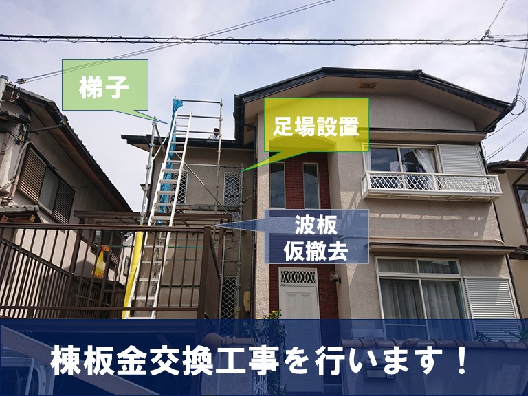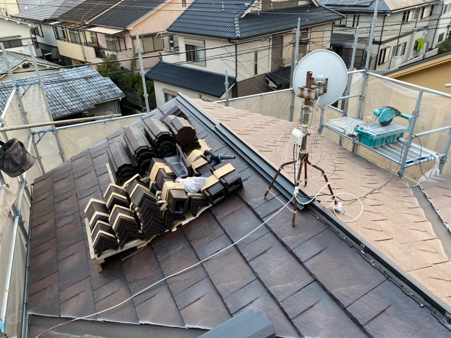 みなさまこんにちは!以前現場ブログでFIX窓のサッシ周りが原因で雨漏りしていたA様邸についてご紹介したことがあるのですが、「屋根の棟板金が飛散している。」とのご相談も受け、今回火災保険を使って『棟板金交換工事』を行うことになりました!その様子を今回の現場ブログでご紹介していきたいと思います。棟板金の飛散は場合 ...続きを読む2021/09/11 和歌山市で屋根のてっぺんが飛んだ!?その部分は棟板金でした