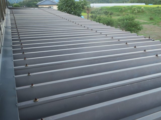 こんにちは。下平です。今回は長野県下伊那郡阿智村にて倉庫の金属系屋根塗装改修工事などを行います。まずは先日おこなった現地調査の様子です。折半屋根全体の色が薄くなっているのと、ボルトの錆が目立ちだしてきています。 ...続きを読む2021/09/9 飯田市内で軒天の工事などを行いますー軒天の補修2