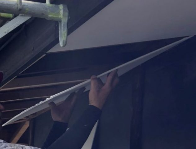 こんにちは!飯田市内で行う軒天の工事などのご紹介です。今回は軒天の補修の様子2回目です。 前回古い軒天材をすべて撤去し、垂木の補強を行いました。今回ご紹介する工事は、新しくケイカル板を張り、塗装する様子です。前回のブログはこちら→飯田市内で軒天の工事などを行いますー軒天の補修1 ...続きを読む2021/09/9 高崎市で風害を受けた屋根の瓦を直すために保険で足場架け工事