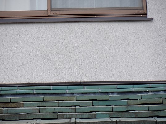 高崎市のお客様の建物の外壁を調査をしています。庇の右上の外壁にはひび割れができています。 こちらは換気扇の換気口の左上の外壁にひび割れができています。こうした開口部分のひび割れは地震の時などに入りやすくなっています。 ...続きを読む2021/09/9 高崎市で雨漏りしている日本瓦の屋根の隅棟を直す見積もり調査