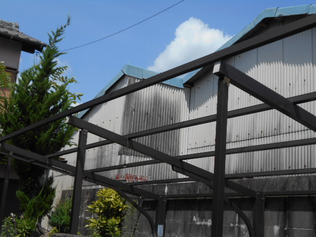 岐阜市にお住いのお客様から「軒天が剥がれてしまっている」とご相談をいただきました。 さっそく現地にお伺いし調査していきます。強風によって軒天の傷みが始まっていた部分が剥がれてしまったようです。 軒天は穴が開いたりするとそこに鳥などが巣を作ったりと後々大きな被害になりますので早めに ...続きを読む2021/09/7 岐阜市にて台風でカーポート屋根が飛散してしまっている現場調査に行ってきました
