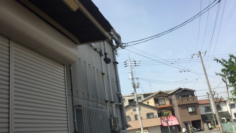 2021/08/29  東大阪市で倉庫のスレートが破損したので保険を利用し庇修繕工事