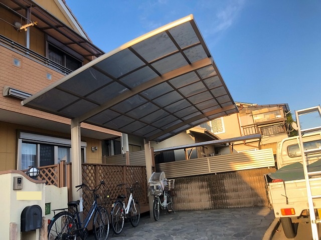 2021/08/29  東大阪市でカーポートの屋根を火災保険利用で貼替工事