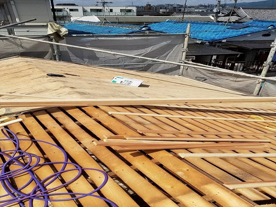 2021/08/29  八尾市屋根葺き替え下地工事野地板施工からルーフィング施工