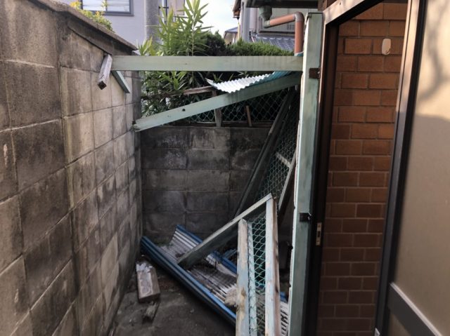 2021/08/29  八尾市で台風被害で物置の屋根が壊れたので修理しました。