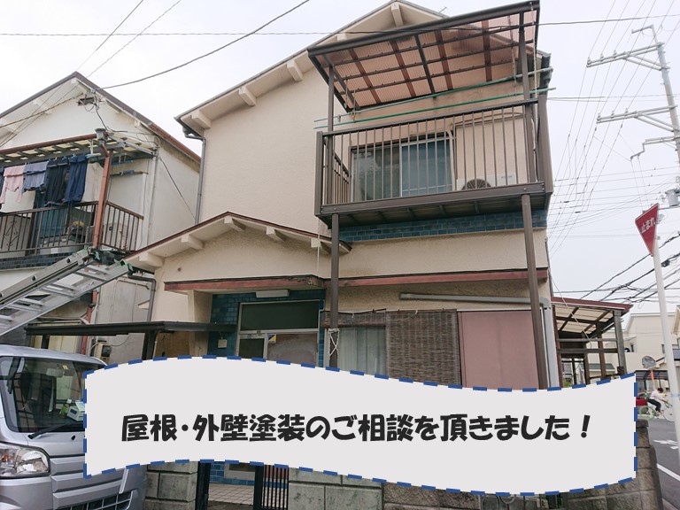 八尾市で2階のベランダの波板修繕のご相談です。OB様からのご依頼で、以前から波板がバタバタ音が鳴ってうるさかったそうです。 ベランダに設置されたアルミのテラス屋根です。波板自体変色しているので、経年劣化によるフックの割れや、波板自体に問題があるかもしれませ ...続きを読む2021/07/29 八尾市で屋根工事のために近隣挨拶と足場を設置しました