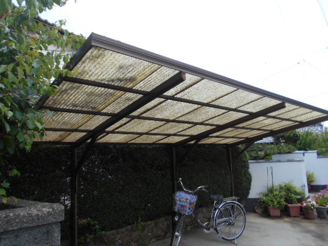 岐阜市のお客様から「車庫の屋根が雨漏りがしているので張替工事をお願いします」とのお問い合わせがありました。 早速屋根の点検に伺いました。屋根はバンポーライト葺きでした。 波形ポリエステル板でガラスネットを挟んで強化した硬質塩化ビニル素材でできた波板です。 築25年ほどの車庫ですが、長年放ってお ...続きを読む2021/07/27 岐阜市にてトタン屋根から雨漏りがしているので現場調査に行ってきました