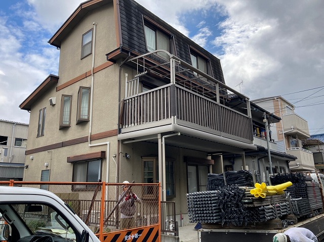 ガレージや倉庫等をお持ちの方!街の屋根やさん和歌山店では、ご自宅以外の屋根修理も行っています★今回ご紹介するのは、和歌山市在住S様が所有しているガレージの波型スレートの簡易補修工事についてです。ガレージの屋根が破損し、その隙間から雨水が入ってくる。と、ご相談いただき現場調査へお伺いし、後日簡易補修したときの様 ...続きを読む2021/07/8 八尾市屋根塗装・外壁塗装工事。足場の上から施工前点検で安心