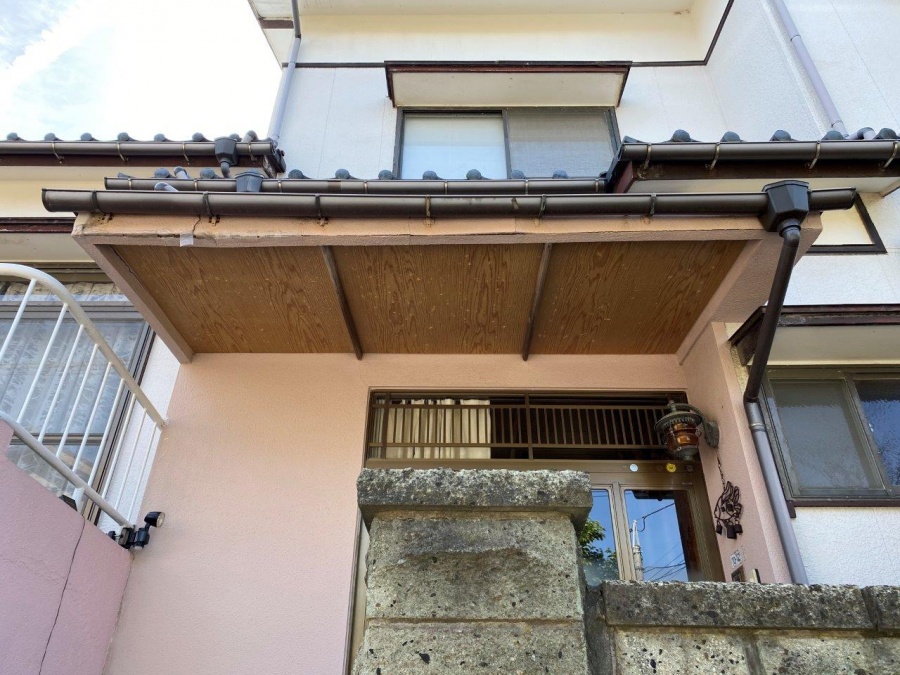 八尾市の某町内会さんからのご依頼です。築40年以上の木造戸建て住宅を町内会館として使用しています。玄関を入ってすぐの天井に大きなシミが出来ました。雨漏れの原因調査・雨漏れ対策施工・破損瓦の修理をしてほしいという事で、現場調査させて頂きました。 ...続きを読む2021/06/27 八尾市で樋清掃工事軒樋が溢れて波板の上に雨が落ちる現場調査
