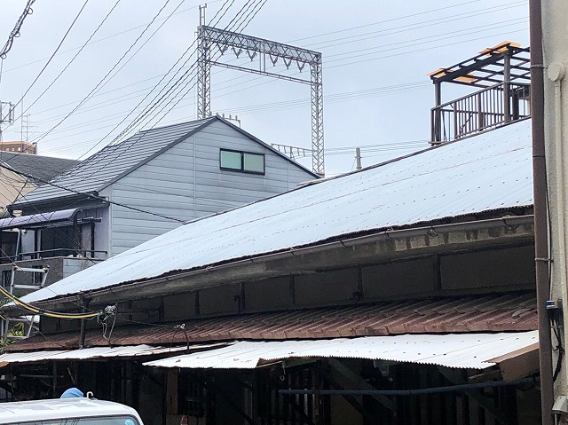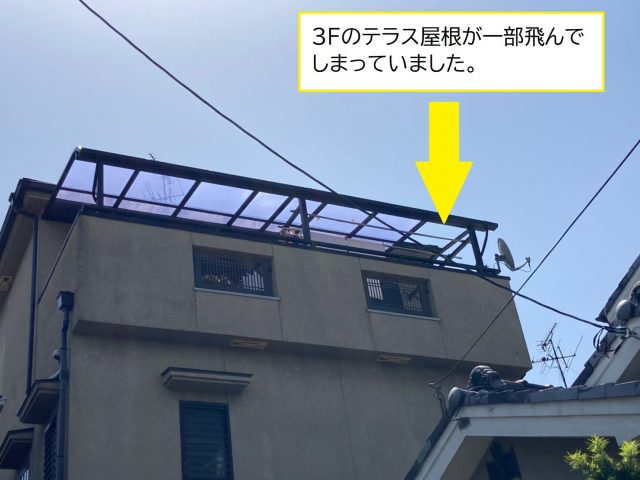 八尾市にお住まいの方から「テラス屋根が一部飛んでしまったので見積もりをしてほしいです」と問い合わせをいただきました。街の屋根やさん八尾店ではお見積りを作成や現場調査は無料で行っておりますのでお気軽にお問い合わせください。現地にお伺いし状況を確認してみると、3階建ての戸建て住宅で、テラス屋根は3 ...続きを読む2021/06/27 八尾市で屋根工事評判の良いガルバリウム鋼板に葺き替え