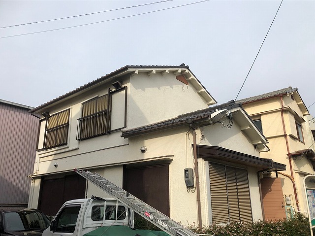 八尾市で先日工事していた平屋造りの連棟住宅です。家主様のご依頼でトタンの屋根を張り替えさせていただきました。トタンの表面が劣化して塗膜がサラサラの為、屋根の上はすべりやすくなっていました。急に雨が降っても困るので、めくっては新しいトタンを貼り付けての繰り返し作業でした。工期中は雨が降ったり強風に煽られたりで中 ...続きを読む2021/06/27 八尾市で台風被害飛ばされた瓦を軽量屋根材カラーベストに葺き替え
