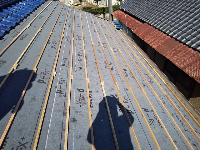大垣市にお住いのお客様より「屋根が黒くなって汚れています。飛散しないか心配です。塗装できますか」とのご相談をいただきました。早速調査に伺いました。屋根は大波スレート屋根でした。築年数がかなり経過していてメンテナンスがされていませんでした。屋根の痛み具合は 屋根に上がって見て触れて歩いて確かめる必要がありました。かなりスレートが劣 ...続きを読む2021/06/28 倉敷市中庄で増築部板金屋根葺き、下葺き材貼り中です