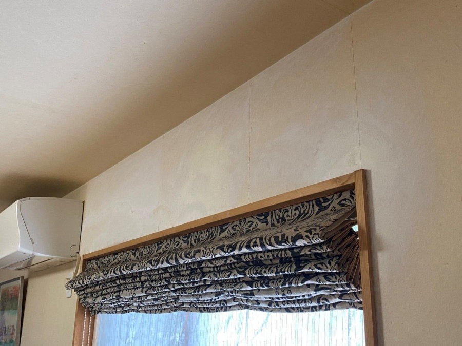 新潟市江南区にお住まいの方より、雨漏れが発生したので見て欲しいとご連絡を頂き、早速状況を確認してきました。 今回雨漏れした箇所は引き違い窓の上で、広範囲に雨染みが広がっている状況です。 お客様自身で雨漏れした際に雨染みが気になったそうで、内壁に漂白剤を付けたのであまり ...続きを読む2021/06/18 新潟市東区にて雪害によって瓦屋根のズレが発生した事故