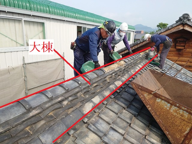 屋根葺き替え工事の既存屋根材の撤去と防水紙張り 四国中央市土居町で屋根葺き替え工事をします。既存のコロニアルを撤去して石粒付き鋼板屋根の「セネター」へ屋根葺き替えする工事で、今回は既存のコロニアルの解体撤去から防水紙張りまでの施工の様子をご紹介します。前回のブログ>>「仮 ...続きを読む2021/06/17 岐阜市で、棟が崩れた瓦屋根は取り直し工事が必要です