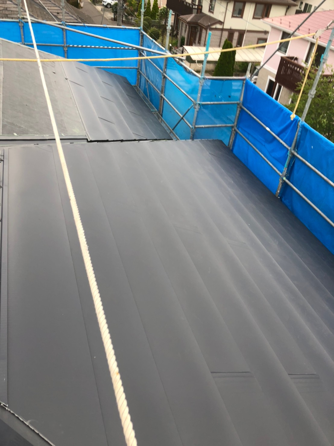 仙台市若林区でスレート屋根の上からスマートメタルを重ね葺きした続きのブログになります。前回は防水紙と軒先板金の施工を紹介しました。今回はスマートメタルの本体材や雪止め棟板金について紹介しようと思います。この写真はスマートメタル施工途中の写真です。スレート屋根に比べて縦横の幅ともにスレート屋根よ ...続きを読む2021/06/18 角田市でのスレート屋根調査 無料診断で調査・ご提案まで行います