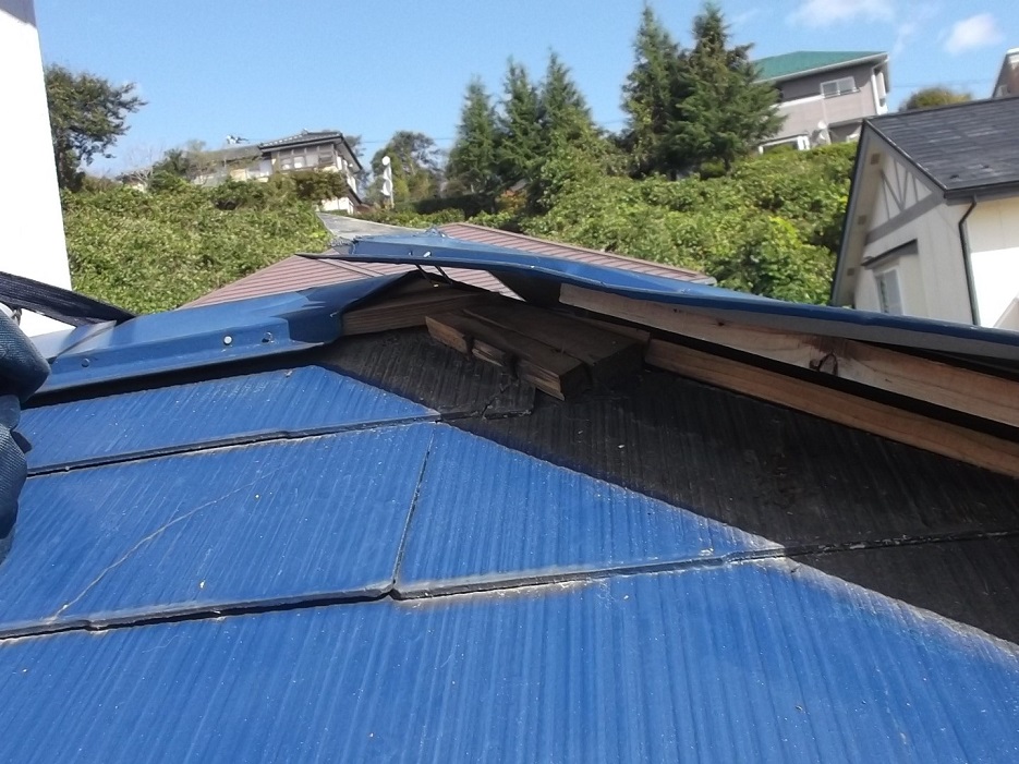 柏市東中新宿にて、風災により棟板金が飛散してしまったお建物の棟板金部分交換工事を行ないました。こちらの建物はセカンドハウスとして使用されており先日隣にお住まいの方より棟板金の飛散を指摘されましてこの度補修工事を行うこととなりました。火災保険を適用し工事を進めて参ります。 施工範囲は左の写真の赤枠で囲みました板金が飛 ...続きを読む2021/06/17 多賀城市で棟板金が強風で飛ばされた為棟板金の交換工事を行いました