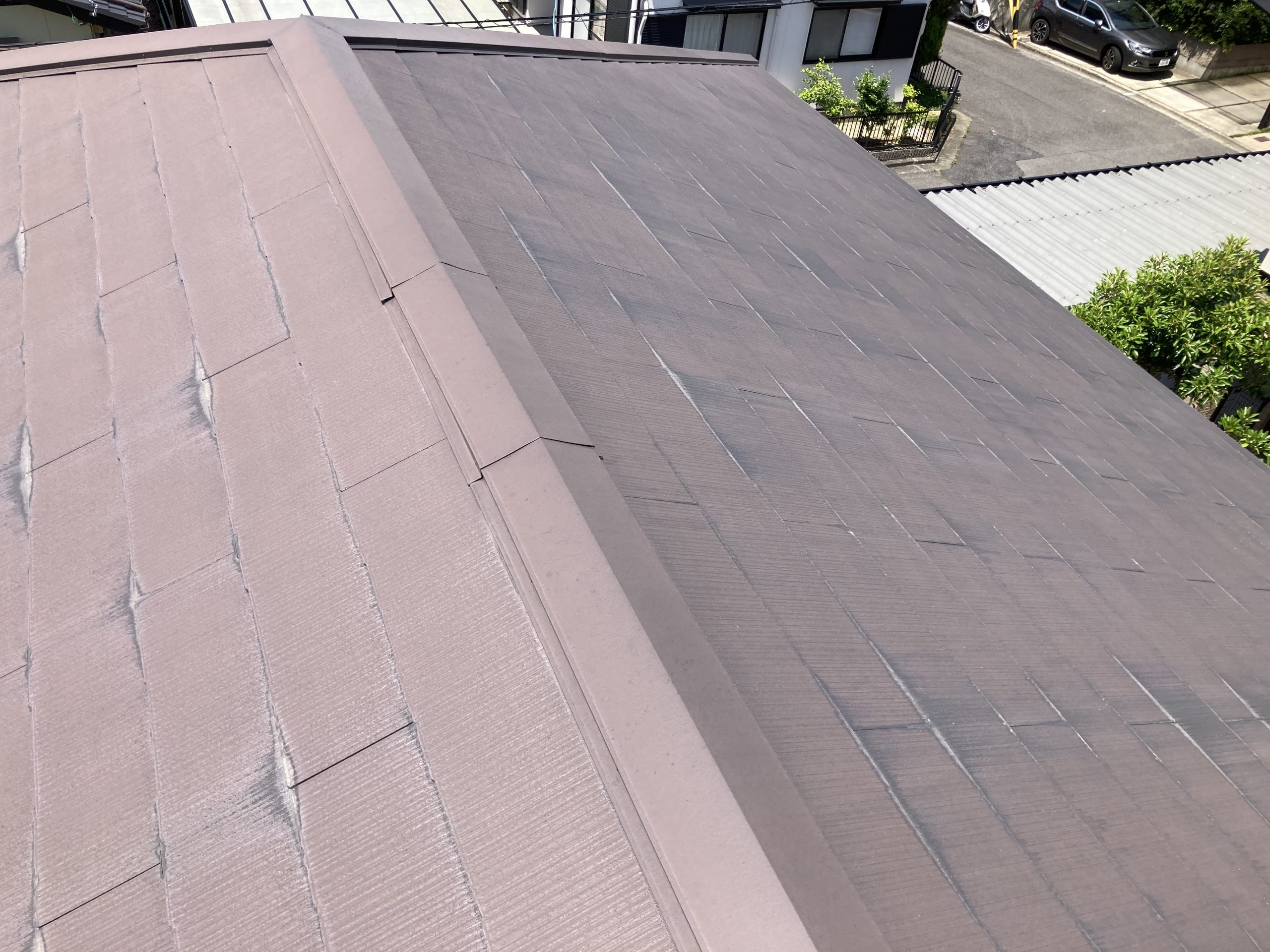 瓦屋根の状況 木更津市吾妻にお住いのお客様より「瓦がズレてしまっているように見える、屋根の状態が心配なので一度見てほしい」と、お問い合わせをいただき屋根調査にお伺いさせていただきました。瓦がズレていることよって、強風などによって瓦が落下してしまうなどの被害で出てしまう恐れがありますので、調査を行いお客様の不安を早期解決し ...続きを読む2021/06/6 高槻市 屋根の色あせ!プロの施工で防水性を取り戻します