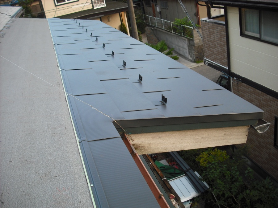 奈良県葛城市で取引のある工務店さんが施工されている新築戸建て住宅の屋根の工事を依頼されました。新築ということで、既存屋根の工事のように屋根下地の補強や補修などはしなくていいのですが、その分、当社の施工不良によって雨漏りが生じたなどの不具合を起こさないように細心の注意をして作業していきます。 ...続きを読む2021/06/5 柏市根戸にて雨樋の調査をし、這樋の固定に緩みが見られたので修繕を行ないました