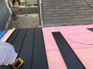 こんにちは!街の屋根やさん京都南店です!本日は前回の続きで城陽市で瓦棒屋根から立平葺きに屋根交換を行う物件をご紹介致します。前日までに下葺き施工まで完了しておりますので、本体施工及び仕上げの板金施工となります。前日までの作業ブログ 城陽市で錆びている瓦棒屋根を立平葺きに屋根交換の為の下地工事板 ...続きを読む2021/07/14 京都府城陽市にて雨漏りしたセメント瓦からリッジウェイ葺き替え