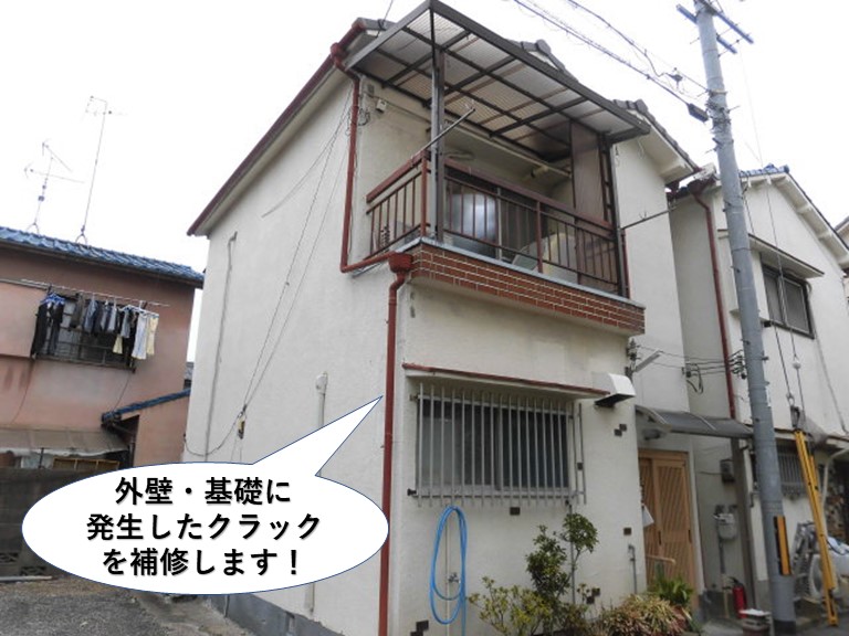 岸和田市にお住いのY様より「台風で屋根瓦が数枚ズレてるんです」とのご相談をいただき、現地調査にお伺いしました。Y様邸はセメント瓦で、下から見ると下屋の棟の瓦がズレているのが分かりました。また、大屋根の地瓦も飛散していました。 屋根の調査状況 ...続きを読む2025/10/6 岸和田市の外壁と基礎に発生したクラックをエポキシ樹脂モルタルで補修
