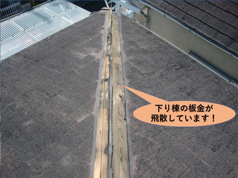 岸和田市のスレート屋根の棟板金復旧工事のご紹介です。前回の記事で、屋根の現地調査及び応急処置の状況をお伝えしました。台風21号で、屋根の降り棟(軒先に向かって伸びる棟)の板金が飛散し、雨漏 ...続きを読む2025/10/4 美濃加茂市加茂野町で隅棟積み直し工事!既存瓦を活かして耐震・防水性も費用も安心な施工法