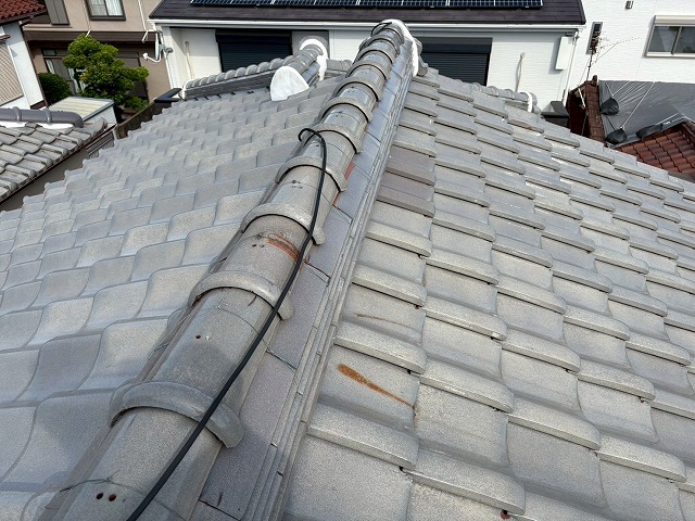 施工前の状態 現地調査では、屋根全体に色あせとサビが見られました。金属屋根は劣化が進むと、サビが広がって強度が落ちるだけでなく、屋根材の寿命そのものを縮めてしまいます。お客様も「できれば早めに直したい」とご希望され、塗装工事に踏み切ることになりました。 ...続きを読む2025/10/3 美濃加茂市加茂野町にて既存の瓦を活かして隅棟の積み直し工事!解体から鬼瓦固定・熨斗瓦の耐震施工まで