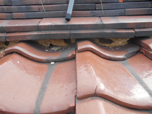 2021/06/2  大垣市 屋根の三日月漆喰が剥がれ落ちて棟が波波状態・屋根無料調査