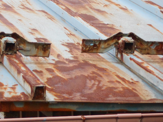 2021/06/2  大垣市にて板金屋根を調査 塗膜が剥がれ金属がむき出しになっていました。