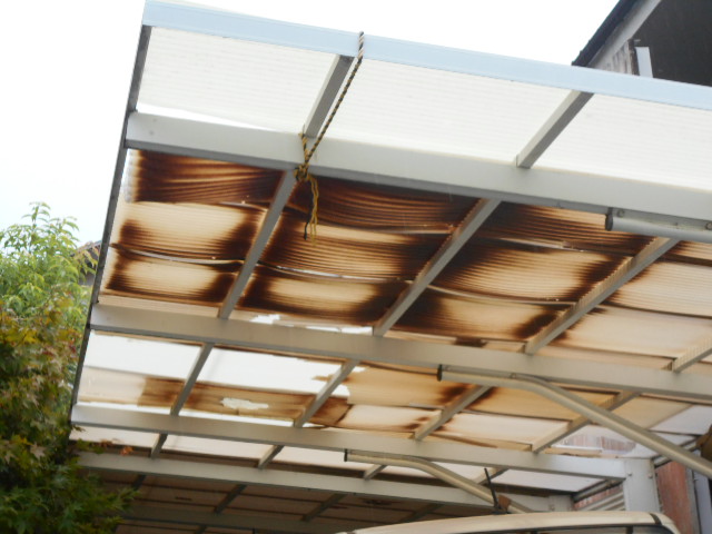 2021/06/2  大垣市 カーポートの塩ビ波板が変色変形して波波の状態・ポリカ波板に張替の提案