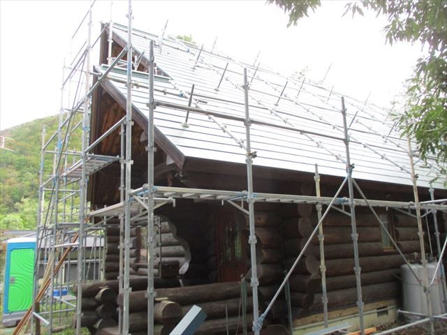 2021/05/28  川崎町│雨漏りが心配なログハウスの木の屋根をダンネツトップ4-1ワイドに葺き替え③