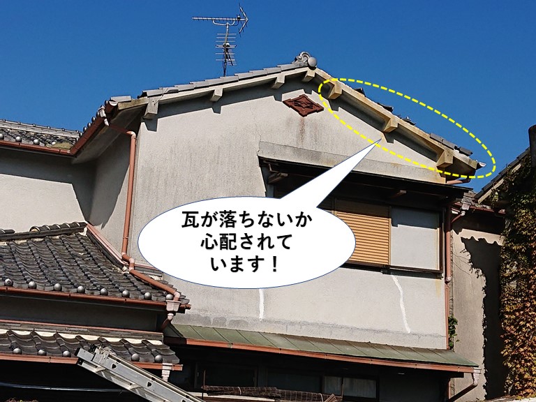 阪南市のK様より「2年ほど空き家にしている家が、台風で屋根に被害が遭ったんです。処分しようと思っていたんですが、瓦が落ちてお隣の家に迷惑をかけているので、とりあえず修理しておこうと思っています」とのご相談があり現地調査にお伺いしました。 K様邸は土葺きの和瓦 ...続きを読む2025/10/2 泉佐野市で台風の強風で瓦が落下し葺き土も流れていました!
