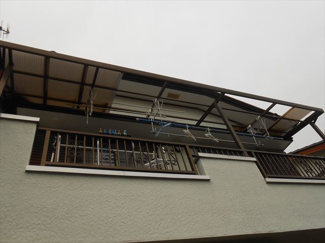 岸和田市土生滝町 A様邸のサンルームの屋根に、日除け(遮光ネット)を取り付けた事例をご紹介します! A様邸は二階のベランダにサンルームがありますが、夏場がとても暑いので、屋根と側面に日除けを取付けていました。 ...続きを読む2025/12/20 沼津市で台風の強風の影響で屋根がなくなってしまいました。