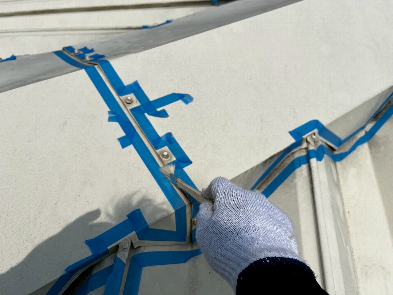 加古川市の皆さんこんにちは街の屋根やさん加古川店です。(^^♪ 今回は加古川市の工場で「棟板金(むねばんきん)」からの雨漏りが確認され、シーリング材を使用して応急処置を行いました。 マスキングで養生しプライマー塗布から開始 ...続きを読む2025/09/27 壬生町の屋根カバー工事で役物板金を取り付けました