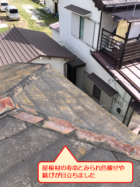 屋根の頂部を覆う棟板金(むねばんきん)は、強風や雨水から住まいを守る大切な役割を担っています。さらに換気棟(かんきむね)が備わっている屋根では、屋根裏の湿気や熱気を効率的に排出する機能も兼ね備えています。今回、袖ケ浦市のぞみ野で大棟(おおむね)の棟板金と換気棟の接合部に剥がれが発生している現場を確認しました。 ...続きを読む2025/09/26 太宰府市にて老朽化で色褪せたスレート屋根と外壁の調査。塗装による同時リフォームをご提案